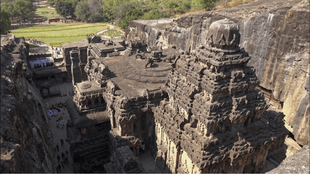 Beyond the invisible bow, a vast structure of intricately carved stone rose from the bottom of a huge basalt pit with vertical walls. The builders, whomever they were, had carved full-sized elephants and full-hipped dancers into every surface of the solid-rock monuments. Some of the dancers had joyous stone bodies with multiple sets of arms, but some of them held a stern expression. The closer he looked, the less human some of their faces appeared.